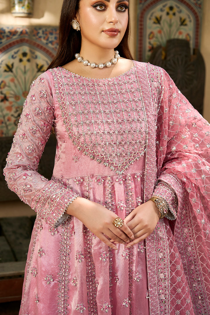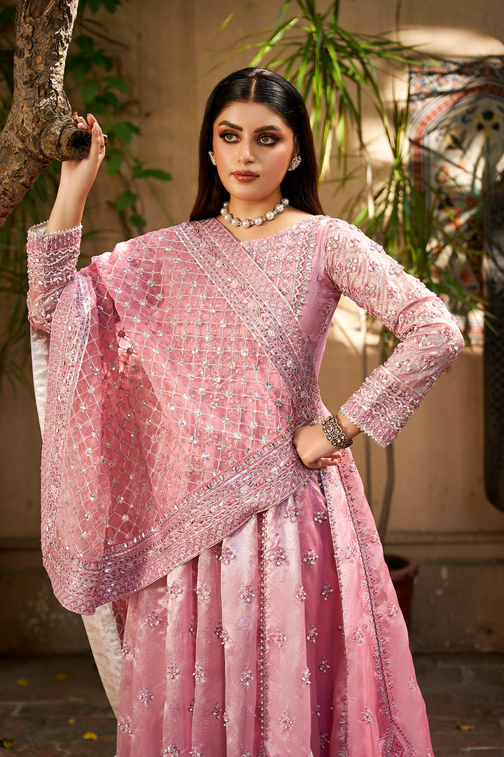 This stunning Rose Gold Maxi is a masterwork of color enhanced by silver and pink embellishments. This motif which is rich in silver sequins is covered in thick embroidery with an antique touch. This is the ideal option for your upcoming "shadi" occasion because of its fully embroidered panels. The bodice is embellished with beautiful designs and a sequin arrangement to finish the gorgeous dupatta. For the contemporary woman who embraces her love of history this dress which is best characterised as "Wow," evokes Maharani vibes.